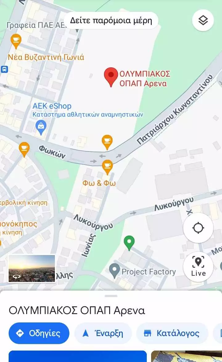 Εάν πατήσει κανείς “OPAP Arena” στο GPS της Google, θα του εμφανίσει την έδρα της ΑΕΚ ως… Ολυμπιακός OPAP Arena!