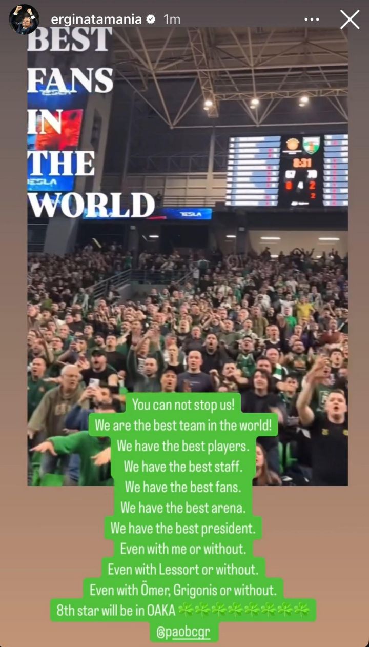 Μερικές ώρες μετά από τη νίκη του Παναθηναϊκού AKTOR επί της Ζάλγκιρις στο ΟΑΚΑ, ο Εργκίν Αταμάν έστειλε μήνυμα στους φιλάθλους των πρασίνων μέσω Instagram.