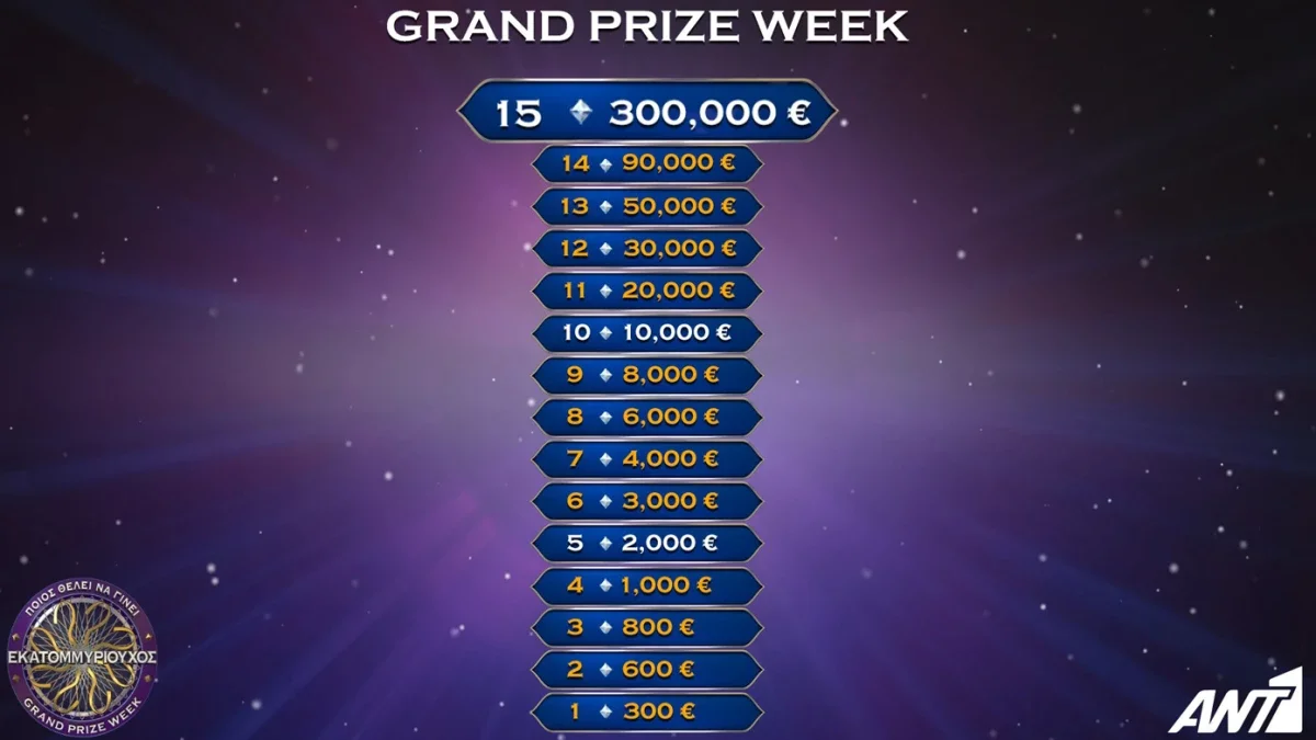 Το «Ποιος θέλει να γίνει εκατομμυριούχος;», το οποίο έχει αφήσει ανεξίτηλο το στίγμα του στην ιστορία της τηλεόρασης, επιστρέφει με ενισχυμένο κίνητρο για τους παίκτες. Το μεγάλο έπαθλο των 300.000 ευρώ είναι στο τραπέζι, και η νέα δομή του παιχνιδιού περιλαμβάνει ένα μίνι πρωτάθλημα τεσσάρων ημερών, με το μεγάλο τελικό να διεξάγεται κάθε Κυριακή. Σε αυτόν το διαγωνισμό, οι παίκτες που καταφέρνουν να φτάσουν στη δεκάτη ερώτηση, εξασφαλίζουν τη συμμετοχή τους στον μεγάλο τελικό.