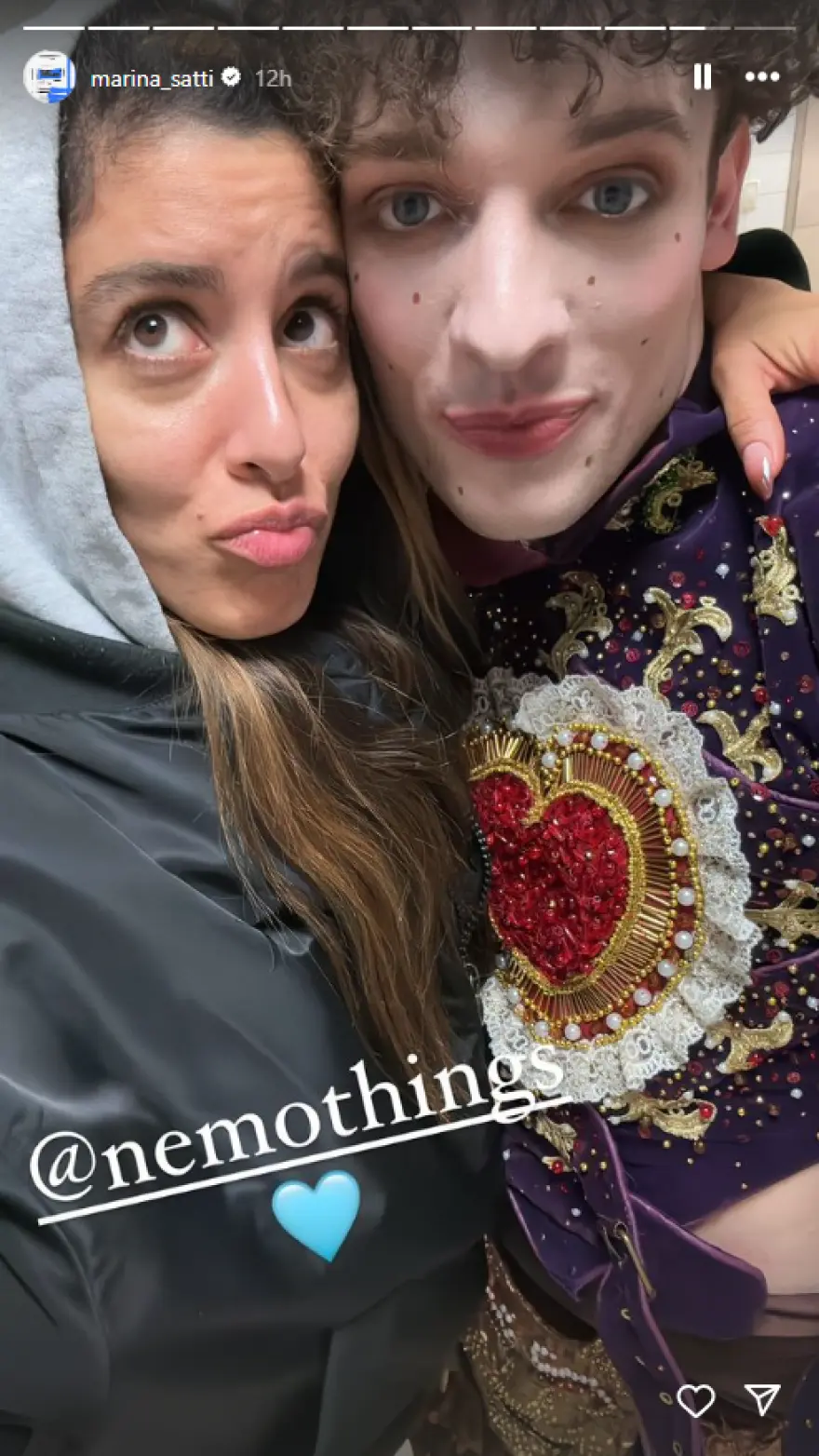 Η Ελληνίδα τραγουδίστρια δημιούργησε έναν στενό, φιλικό δεσμό με τον μουσικό καλλιτέχνη από την Ελβετία κατά τη διάρκεια του περσινού μουσικού διαγωνισμού και έτσι το βράδυ της Δευτέρας 2 Δεκεμβρίου βρέθηκε στα παρασκήνια του σόου για να συναντήσει και να συνομιλήσει με το Nemo.