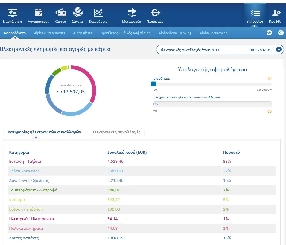 Όλες η τράπεζες μέσα από το e-Banking σας σας δίνουν στοιχεία για το πώς διαμορφώνεται το αφορολόγητό σας με ηλεκτρονικές πληρωμές και μεταφορές που κάνετε. Το μόνο που έχετε να κάνετε είναι να μπείτε στο web banking σας και να κάνετε επιλογή την ενότητα «Αφορολόγητο».