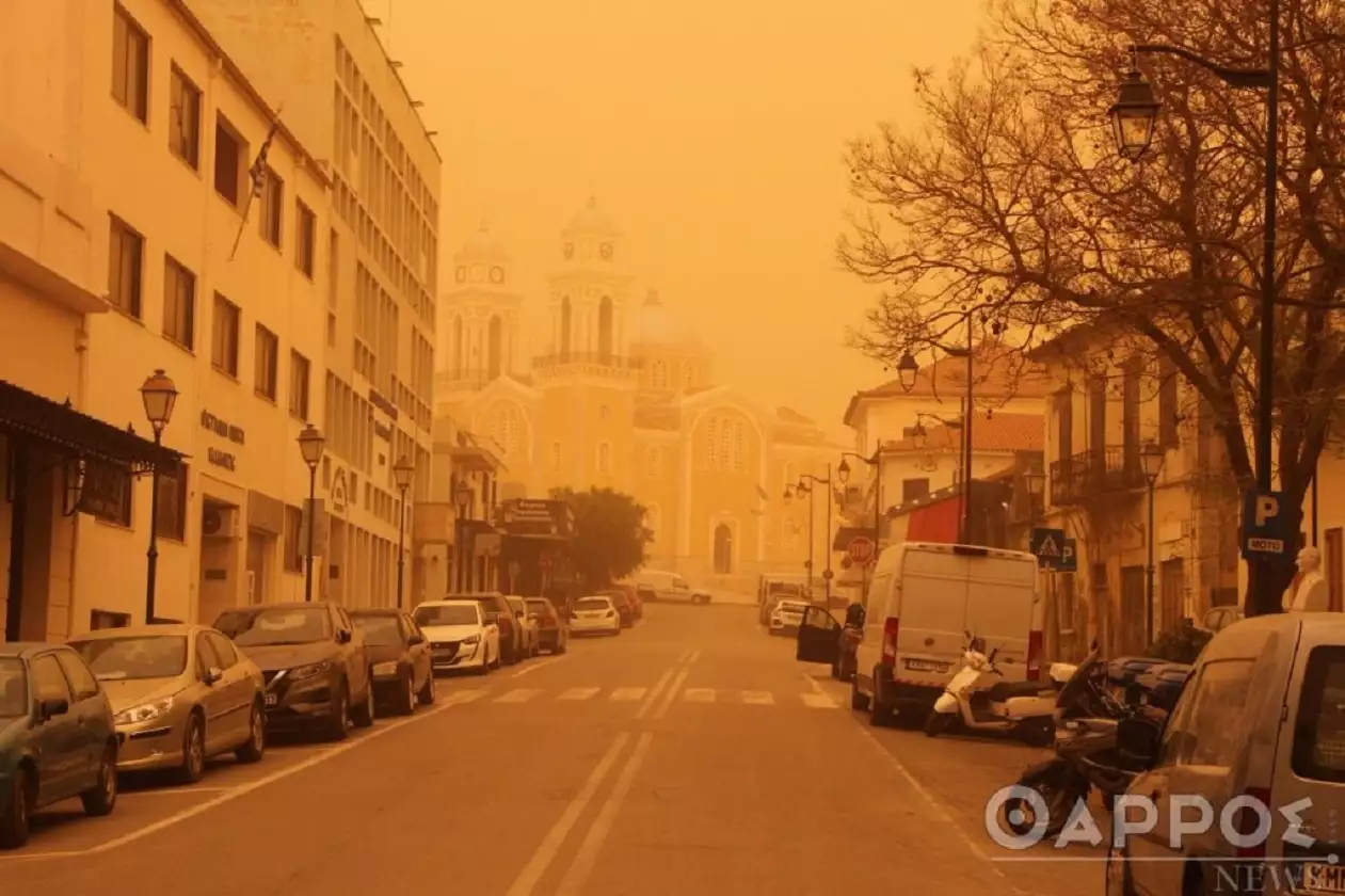 Απόκοσμο είναι το τοπίο σε πολλές περιοχές της Κορινθίας τις τελευταίες ώρες, με την αφρικανική σκόνη να κάνει αποπνικτική την ατμόσφαιρα.
