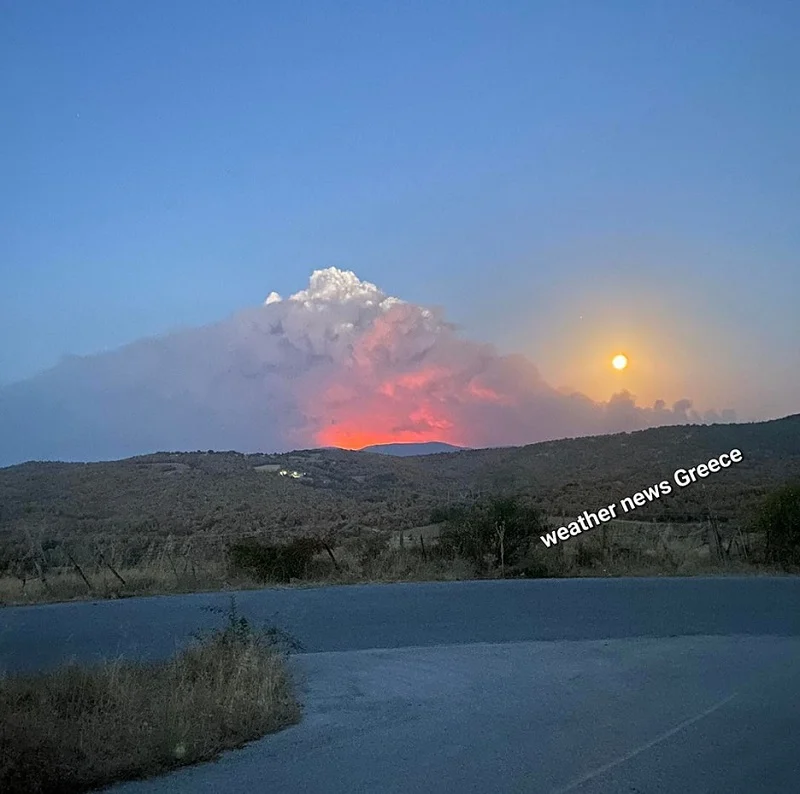 Η φωτογραφία είναι από το Weather news Greece και τη φωτιά όπως φαινόταν από το Σιδηροχώρι Έβρου: