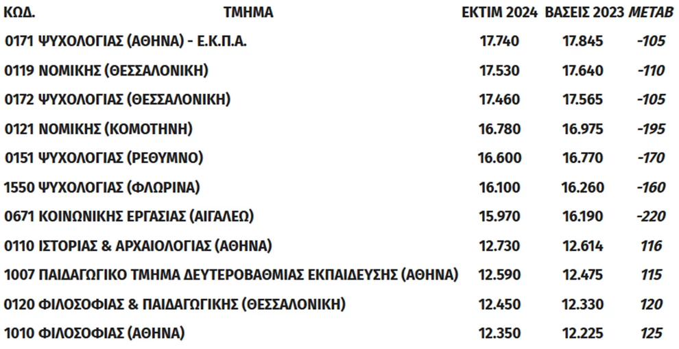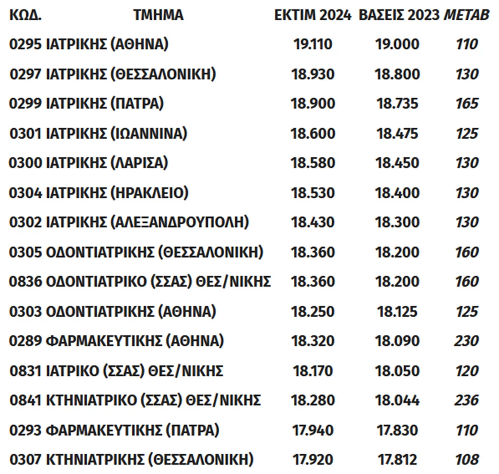 Σε αυτό το πεδίο εκτιμάται ότι θα σημειωθούν οι εντυπωσιακές μεταβολές. Πιο συγκεκριμένα τα τμήματα με περσινές βάσεις άνω των 18.000 μορίων ενδεχομένως να έχουν πτώση μεγαλύτερη των 400 μορίων!