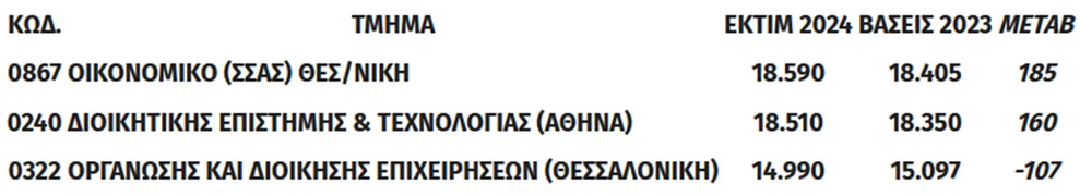 Κάποια εκ των τμημάτων που φαίνονται να έχουν μεταβολές μεγαλύτερες των 100 μορίων είναι το Οικονομικό ΣΣΑΣ και το τμήμα διοικητικής επιστήμης και τεχνολογίας του Οικονομικού Πανεπιστημίου Αθηνών τα οποία εμφανίζουν τη μεγαλύτερη ανοδική τάση.