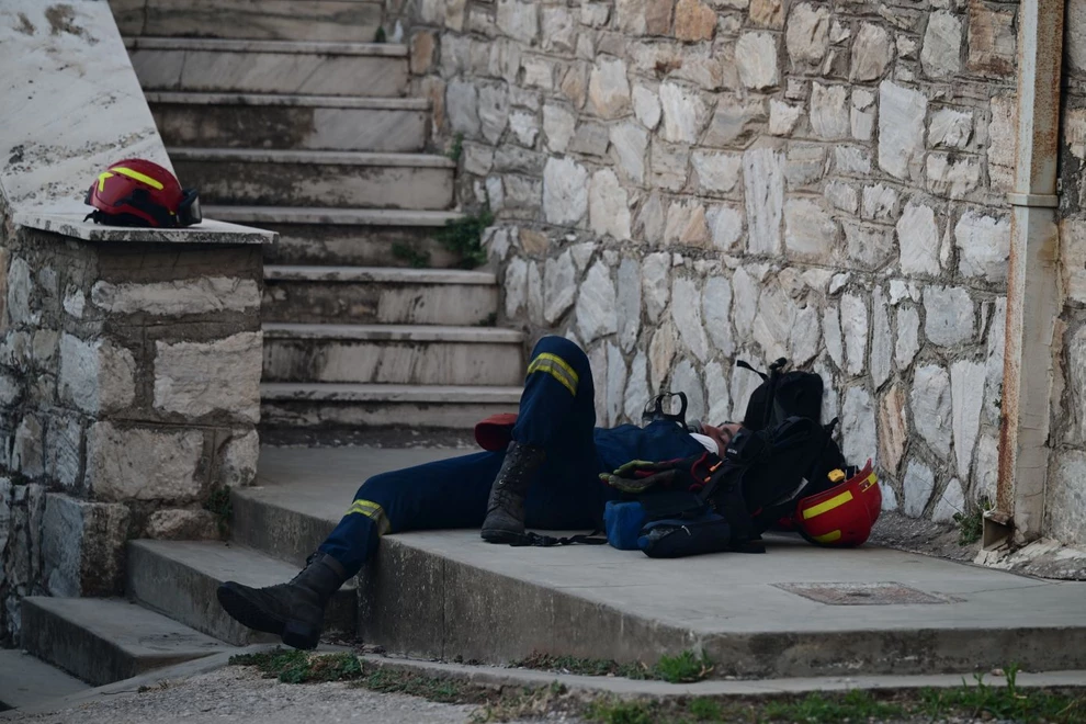 07:25: Η μάχη των πυροσβεστών με τις φλόγες με το πρώτο φως της ημέρας σε φωτογραφίες. Συγκλονίζει η εικόνα του πυροσβέστη μετά την εφιαλτική νύχτα.