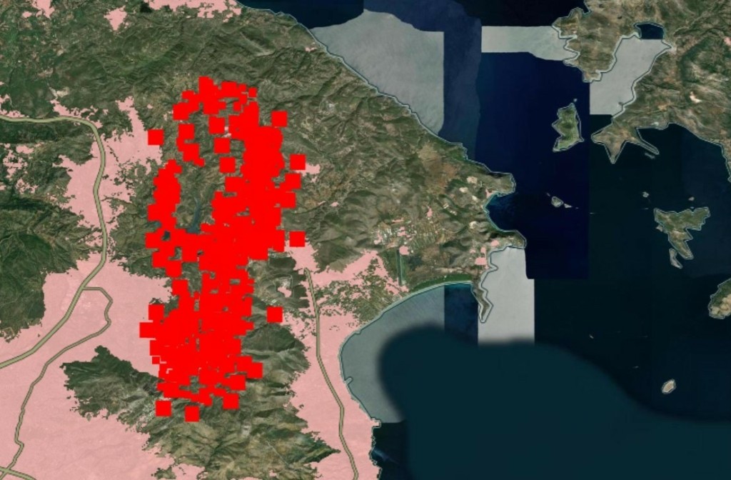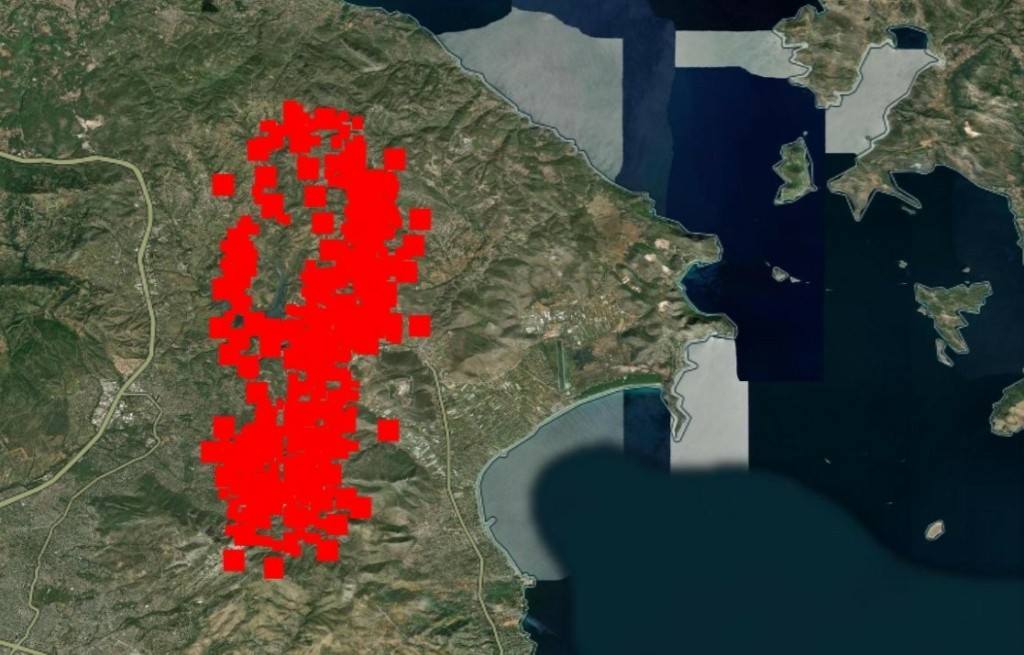 Τον εφιάλτη που βιώνει η Αττική λόγω της τεράστιας πυρκαγιάς που κατακαίει την ανατολική της πλευρά αποτυπώνει με τον πλέον σοκαριστικό τρόπο ο χάρτης του Πληροφοριακού Συστήματος Πυρκαγιών (FIRMS) της NASA.