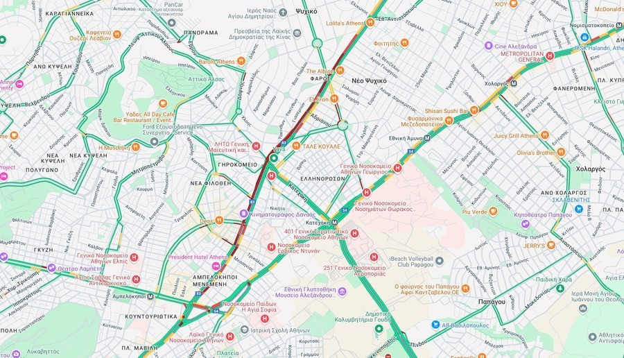 Η κίνηση ξεκινάει από το ύψος των Αμπελόκηπων και φτάνει μέχρι το Ψυχικό.