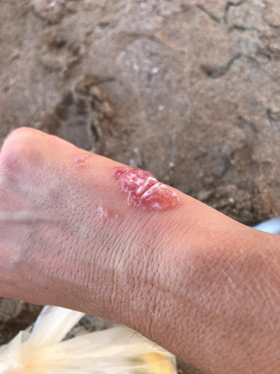 Εικόνες με τα σημάδια από την επαφή με μωβ μέδουσες