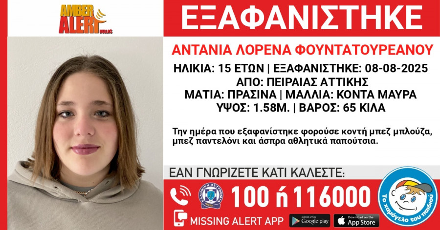 Όποιος γνωρίζει κάτι, καλείται να επικοινωνήσει άμεσα, όλο το 24ωρο, με «Το Χαμόγελο του Παιδιού» στο 116000, με οποιοδήποτε Αστυνομικό Τμήμα ή μέσω της εφαρμογής Missing Alert app, όπου παρέχεται συνεχής ενημέρωση για την υπόθεση.