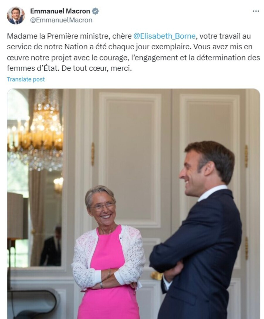 Σε ηλεκτρονικό του μήνυμα ο Γάλλος πρόεδρος αναφέρει ότι η εργασία της Μπορν στην υπηρεσία του γαλλικού Έθνους ήταν καθημερινά υποδειγματική.