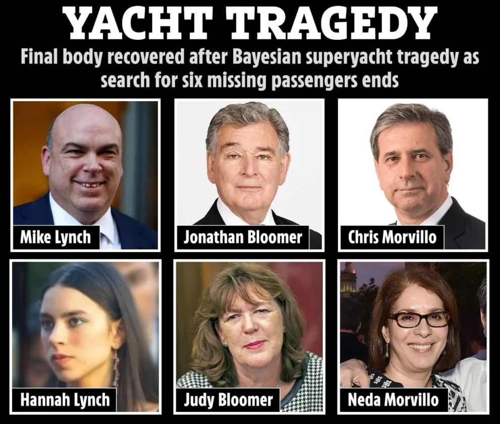 Ο Βρετανός μεγιστάνας της τεχνολογίας Μάικ Λιντς και η 18χρονη κόρη του Χάνα ήταν μεταξύ των έξι ανθρώπων που ανασύρθηκαν νεκροί μετά τη βύθιση του πολυτελούς σκάφους κοντά στο Πορτιτσέλο.