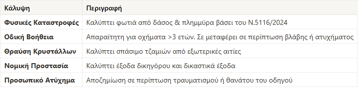 Εκτός από την υποχρεωτική κάλυψη, μπορείς να προσθέσεις προαιρετικά και άλλες καλύψεις, όπως: