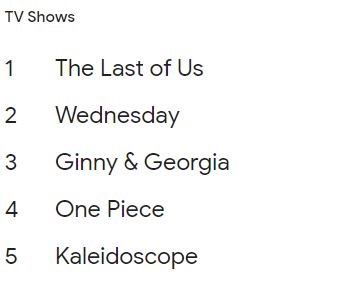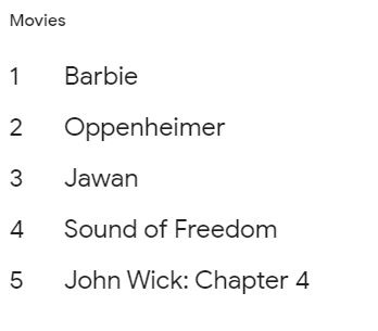 Στον χώρο της ψυχαγωγίας, η Barbie κυριάρχησε στις αναζητήσεις ταινιών της Google και ακολούθησε το Oppenheimer. Αναφορικά με τις σειρές, πρώτο αναδείχθηκε το “The Last of Us“, ενώ το “Wednesday” και το “Ginny and Georgia” ήταν 2η και 3η θέση αντίστοιχα.