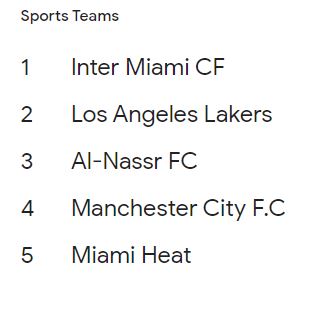 Η μεταγραφή του Λιονέλ Μέσι στην Inter Miami CF, εκτόξευσε την ομάδα του MLS στην κορυφή των αναζητήσεων για αθλητικές ομάδες για το 2023. Η Αλ Νάσρ του Κριστιάνο Ρονάλντο βρέθηκε στην 3η θέση.